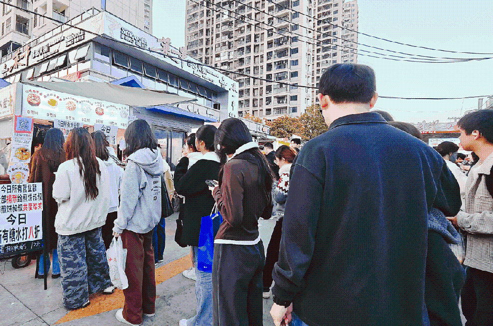 11日,市民和学生依然在现场排起了长队,还有一些外地网友特地前来消费支持。现场,大多数摊位也早早售罄。