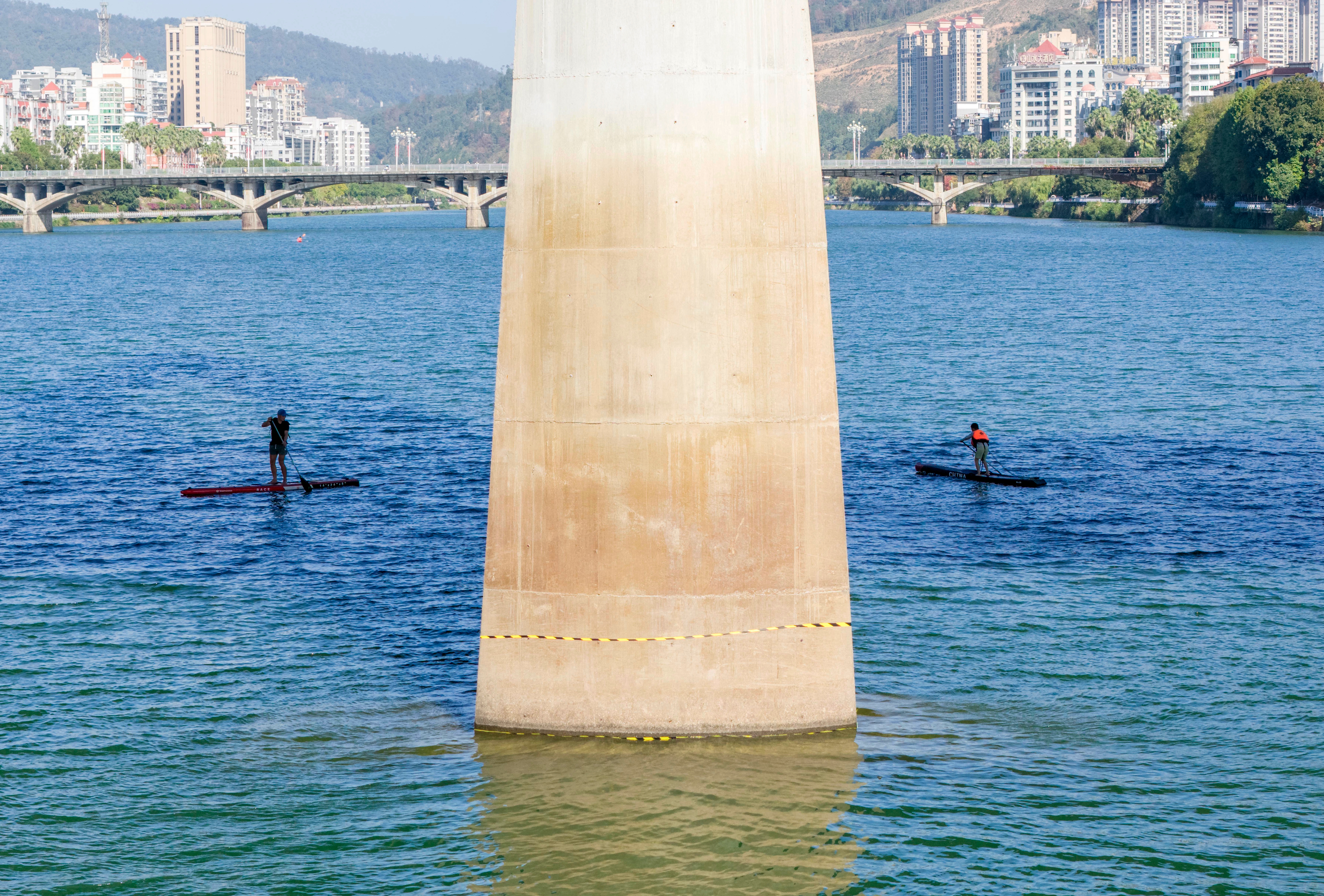出发前,汤泽丞有些按捺不住兴奋,这名年龄最小的参赛选手对面前的这段金溪河赛道早已了然于心。汤冬杰一再嘱咐儿子稳住自己的航线,不要着急。为了和儿子站在同一起跑线上,汤冬杰放弃了练习几年的划艇,放弃了自己更擅长的16公里项目,选择了相对简单的4公里桨板项目。