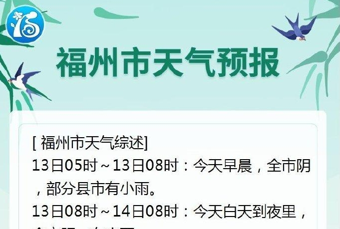 天气:13日全市阴,局部有小雨;14~16日全市多云到晴;17日,阴天间多云,部分有小雨;18~21日全市阴到多云。