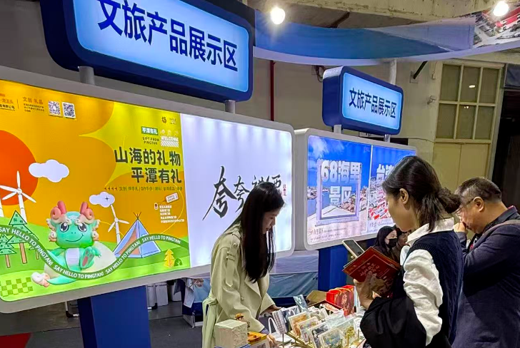 在产品展示方面,平潭馆注重体验与互动,采用多种形式生动呈现平潭的旅游线路和特色项目。现场观众不仅可领略平潭的碧海蓝天、细白沙滩,还能了解本地的风帆、骑行、露营等户外活动产品,沉浸式感受海岛旅游的多元魅力。展馆中还设有推介主题旅游线路、沙雕艺术展示与互动体验、呈现海鲜美食产品等环节,吸引众多游客驻足。此外,平潭馆还集中呈现了一系列文旅融合新产品、特色商品以及精选台货,进一步凸显平潭对台交流的窗口特色,助力平潭好物走向更广阔市场。