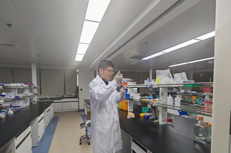 吴名在实验室做实验。