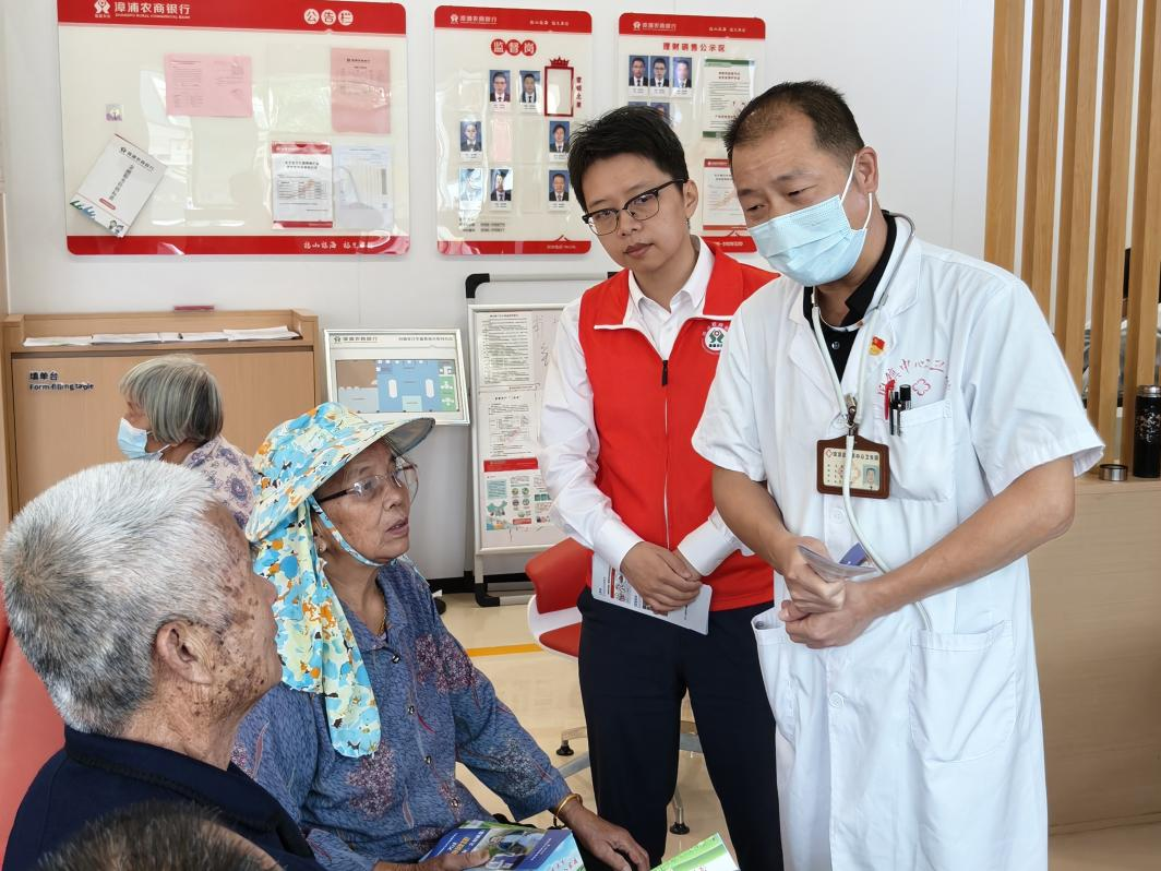 在旧镇支行的特色网点中,一场医疗义诊正在进行。林阿姨想激活医保结算、查询养老待遇,却不懂操作流程来到网点咨询,工作人员得知后,耐心手把手指导办理业务,快速完成功能激活与使用讲解。办完业务的林阿姨还被引导参与免费体检,阿姨边量血压边感慨:“以前觉得金融冷冰冰,现在医疗金融一站办,银行现在的贴心服务真是暖人心啊。”