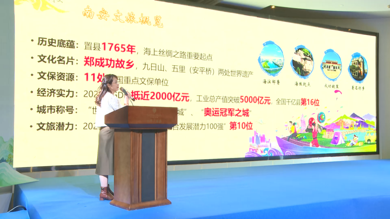 本次推介会由泉州市文化广电和旅游局、南安市人民政府联合主办,南安市文化体育和旅游局、南安市招商办承办。省委、省政府及市政府有关部门领导,省内各设区市文旅局负责人,泉州市招商中心、文旅集团相关领导,省旅发集团领导,南安市领导,泉州市各县(市、区)分管领导及文体旅局分管领导,全国文旅头部企业、省级旅游集团联盟及20强旅游集团负责人,文旅生态合作伙伴,省内OTA代表、港澳台旅行商、主要旅行商、合作银行金融机构代表、参展商代表及新闻媒体记者等出席了活动。