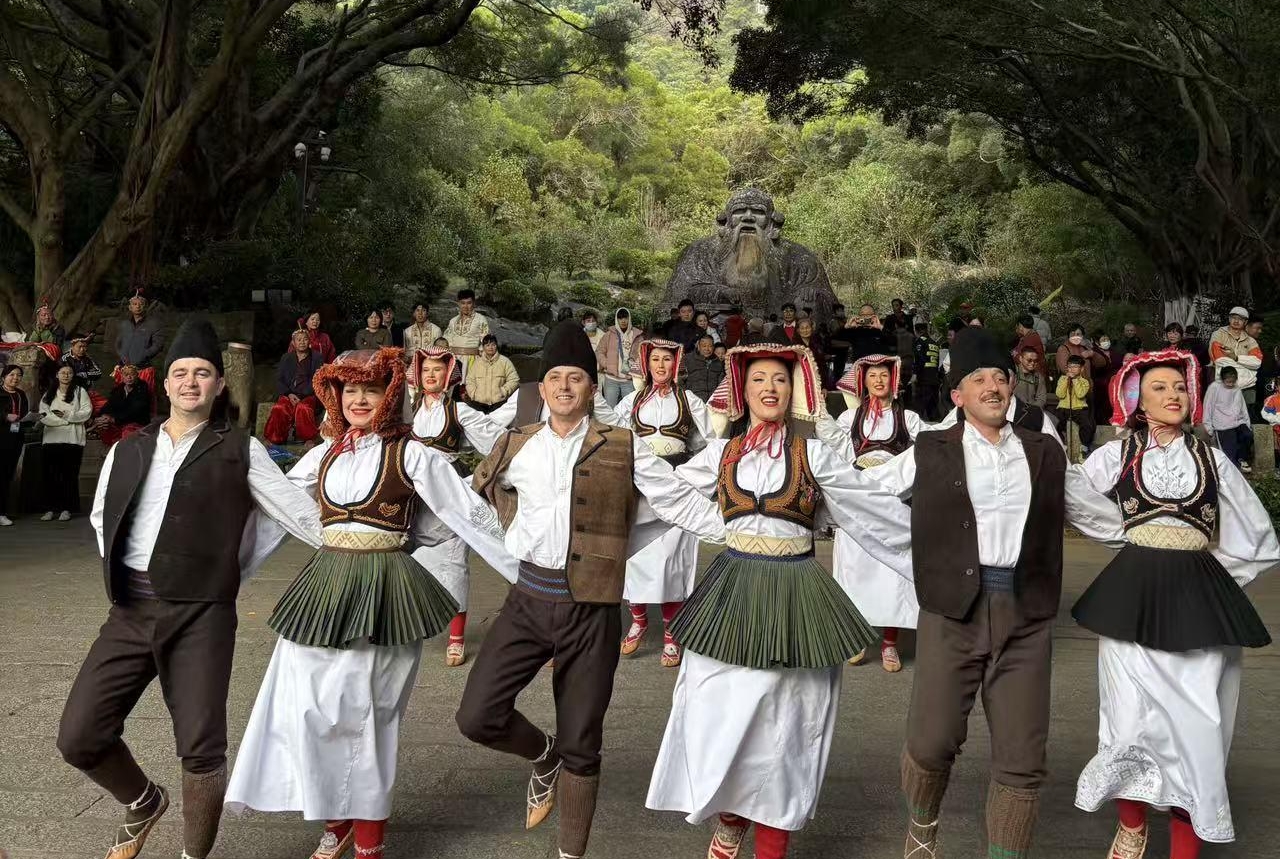 塞尔维亚民族歌舞团在清源山老君岩广场表演