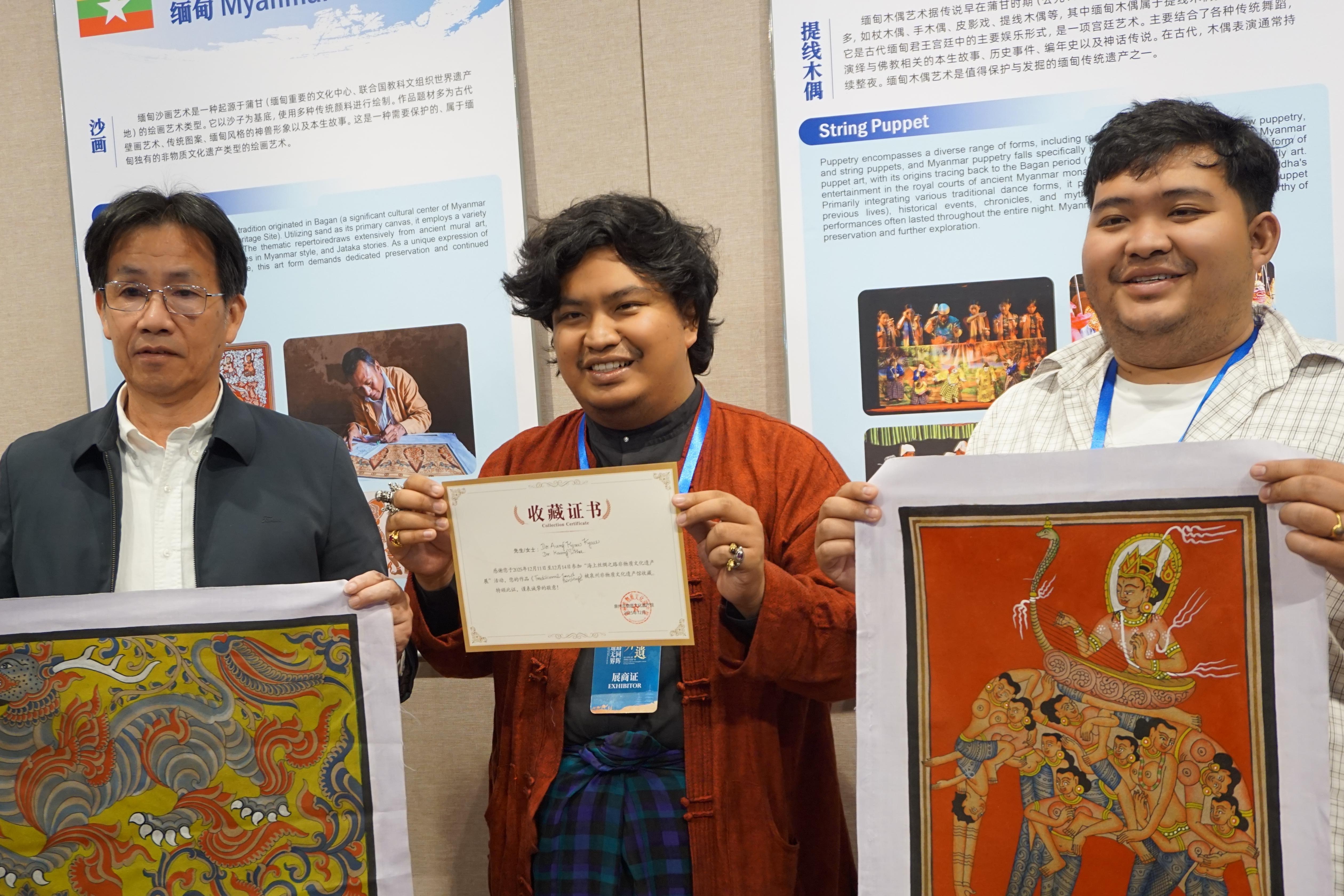 活动现场,泉州市文旅局负责人逐一为各国的非遗传承人送上参展证书,这不仅是对他们传承和传播非遗的肯定,更是对海上丝绸之路文化交流的积极推动。作为回馈,各国非遗传承人纷纷拿出极具代表性的非遗作品赠予泉州市文化馆,泉州市文化馆为其颁发收藏证书。
