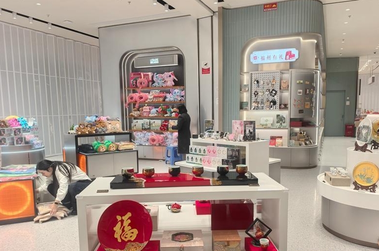 16日,在恒力城商场一层,记者看到几名工作人员正有条不紊地整理商品,酒水、潮玩以及非遗文创等已摆上货架。中免集团福州市内免税店相关负责人介绍,免税店占地857平方米,汇聚众多国际知名品牌,涵盖香水美妆、轻奢饰品、精品箱包、进口酒水等。店内酒水区,融入沉浸式威士忌博物馆设计,销售全球知名产区珍稀美酒。同时,这里集结了人气潮玩周边,更有福州特色商品。