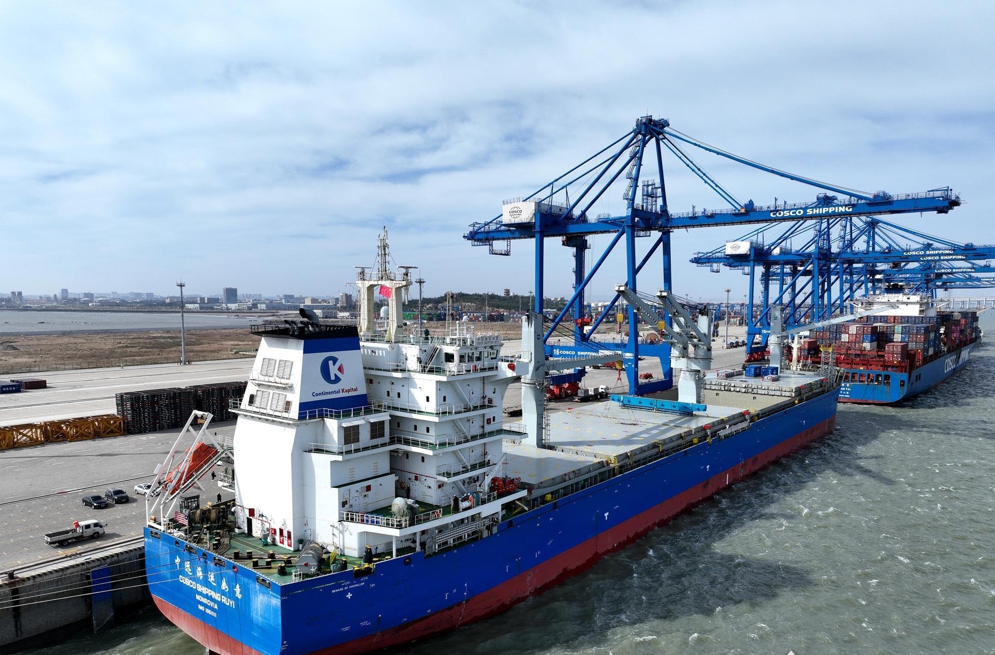 进境货轮在泉州石湖港区靠泊作业 (廖智勇/图)