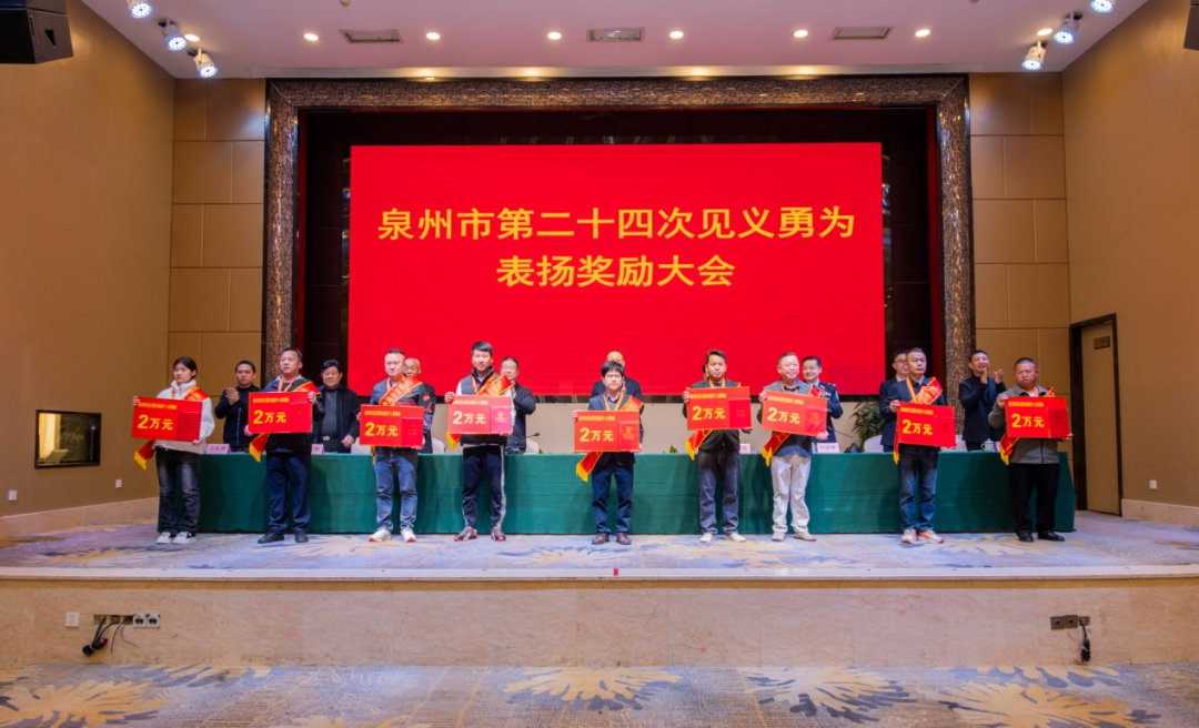 表扬奖励大会上,我县见义勇为人员胡俊辉、周春锋、张少明等3人被授予“泉州市见义勇为先进个人”荣誉称号,惠安县大美小岞见义勇为救援队和惠安县见义勇为协会崇武海上救援志愿服务队等2支队伍被授予“泉州市见义勇为志愿者优秀集体”荣誉称号,惠安县见义勇为协会被授予“泉州市见义勇为先进单位”,与会领导向受表扬的见义勇为人员、见义勇为协会和见义勇为志愿者先进集体代表颁发证书、奖章(奖牌)及奖励金。至此,惠安县见义勇为协会2023年度、2024年度、2025年度连续三年被授予“泉州市见义勇为先进单位”。