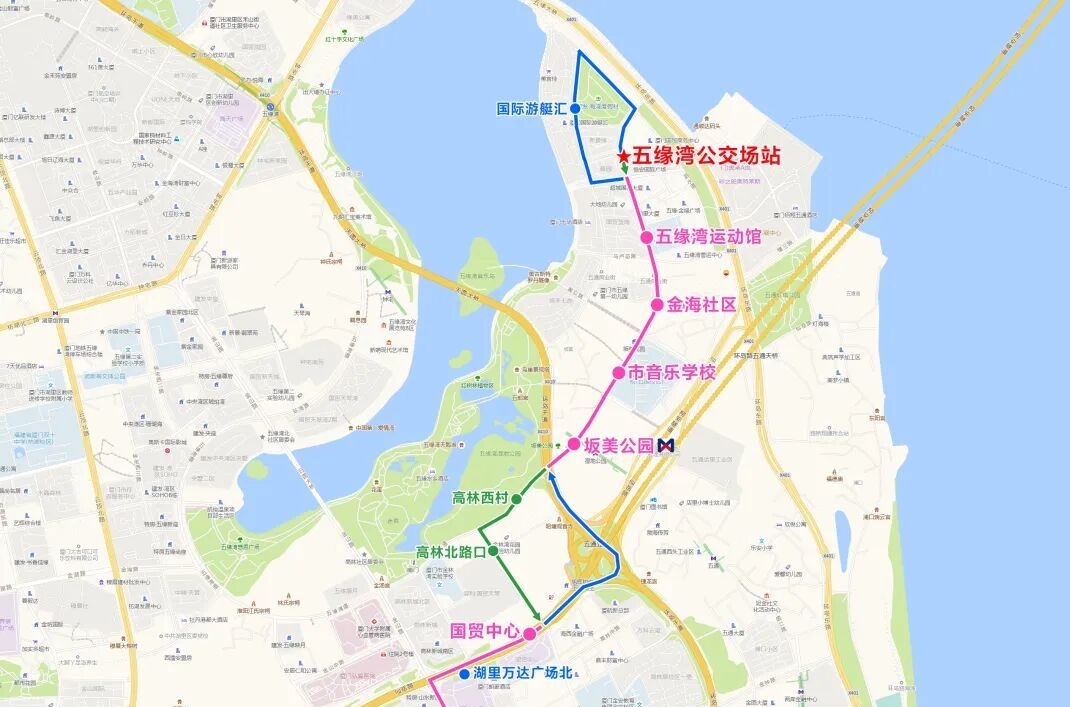 五缘湾公交场站始发,行至洪莲中路石村路口,改经石村路至石村公交场站。