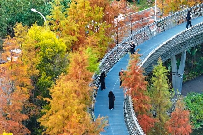 “目前池杉变色率已达五成以上,12月底将进入最佳观赏期,预计可持续至明年1月中旬。”公园管理人员介绍,随着天气转凉,后续池杉颜色还将愈发浓郁,观赏体验会进一步提升。