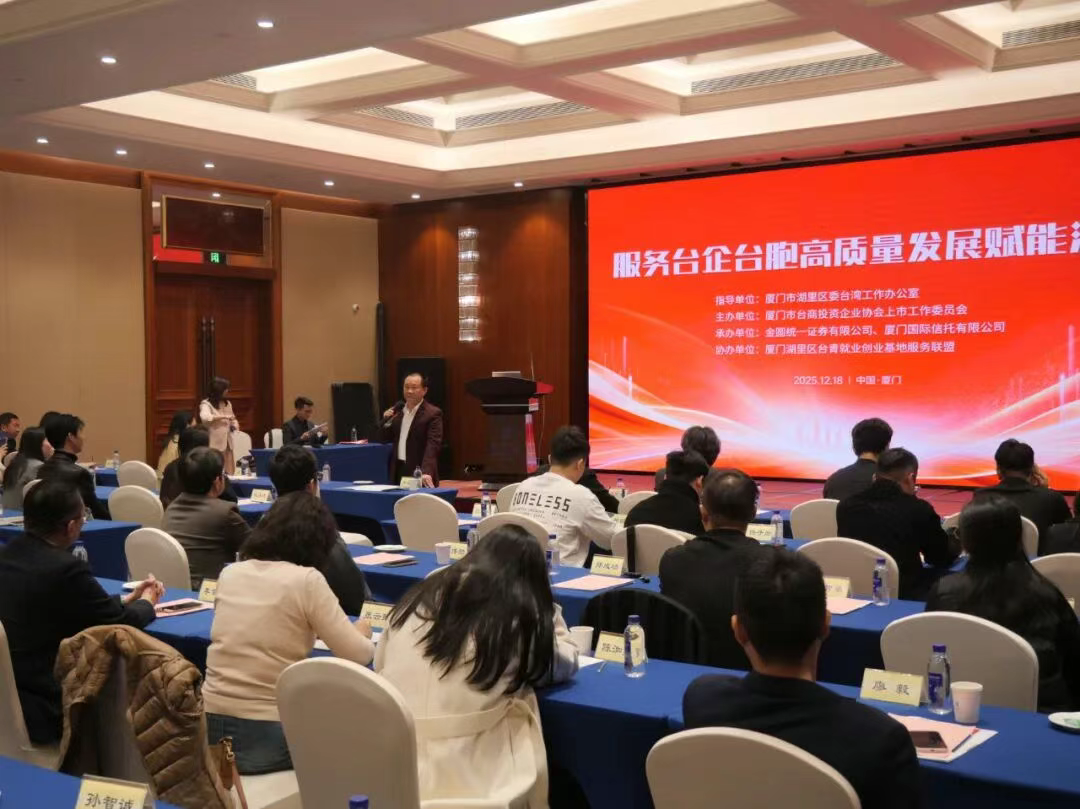 据悉,本次活动主要为搭建台企台胞与金融服务机构的沟通交流平台,为台资企业运用资本市场发展提供指导,协助台胞普及金融知识,强化风险防范意识,引导投资者树立价值投资理念。