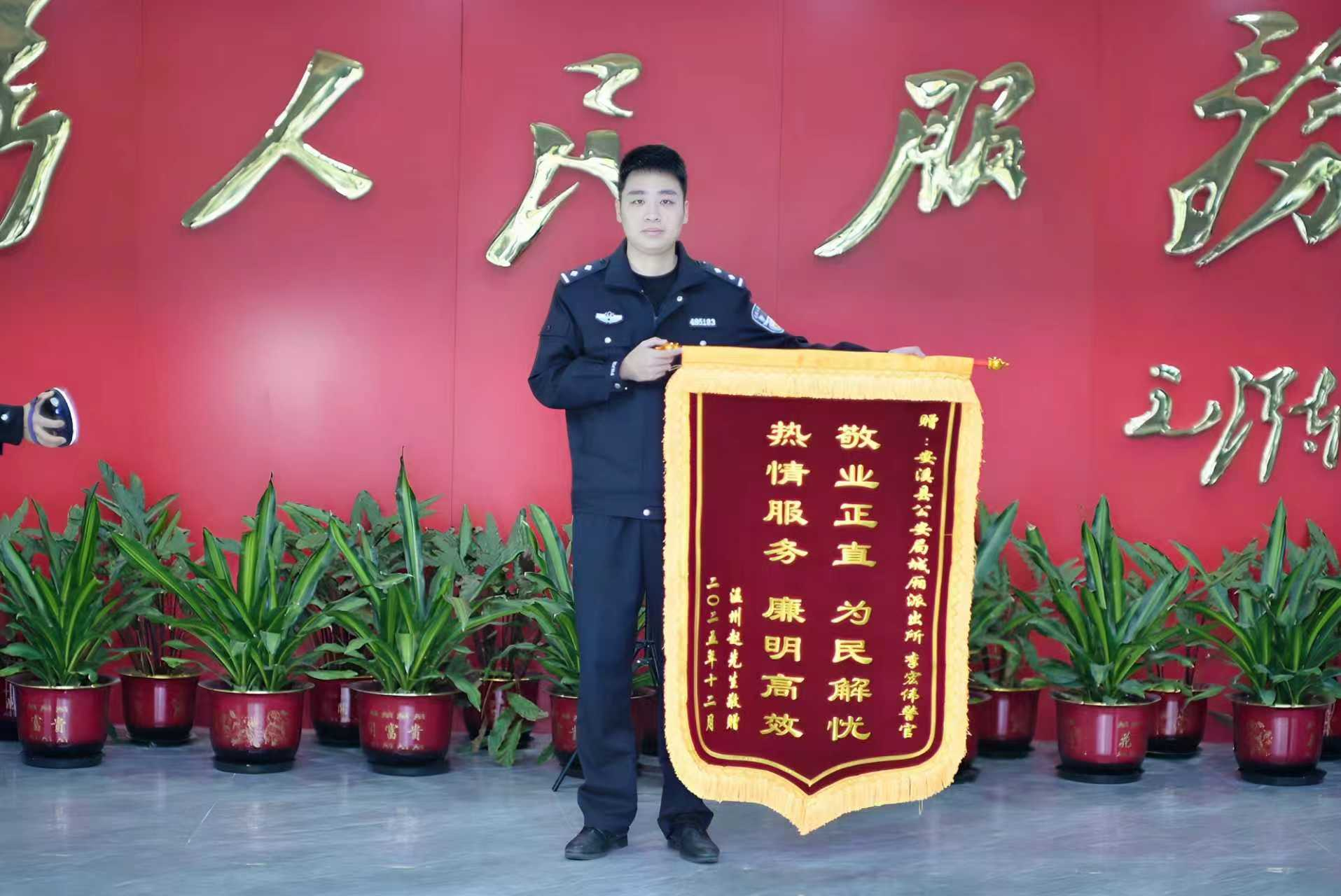 “虽然款数不多,但你仅用了几分钟的时间就帮助我讨回了全部欠款,通过这件事,从你身上我感受到了人性的温暖,体会到了‘人民警察为人民’的真正内涵!”寄件人赵先生在感谢信中满是感激。这个寄往城厢派出所的包裹里,除了一面“敬业正直 为民解忧 热情服务 廉明高效”的锦旗,更藏着他的满心谢意。