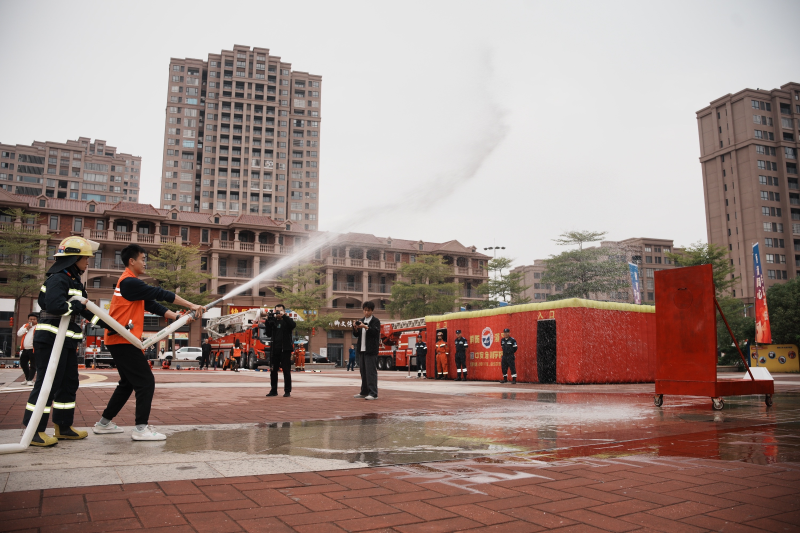 随着消防指挥官一声令下,实战演练环节正式开始。模拟火情发生,烟雾弥漫,企业员工在消防队员指导下低姿疏散、有序撤离。灭火器操作、消防水带连接、应急救护演示……每一个环节都力求真实、注重细节。
