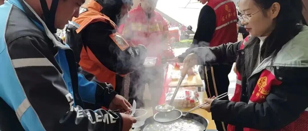 活动现场一派忙碌景象,工作人员分工协作,烧水、煮汤圆、煮水饺、分装打包,有条不紊。圆润的汤圆在沸水中翻滚,阵阵甜香四溢;饱满的水饺在锅里上下翻腾,诱人香气扑鼻而来。外卖员们脱下头盔、放下配送箱,接过热气腾腾的餐食便迫不及待地品尝;环卫工人也停下手中的活计,捧着碗边吃边和工友闲话家常,脸上都洋溢着幸福的笑意。