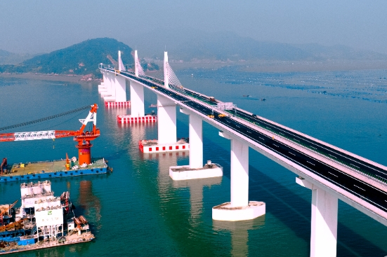 此次通车的霞浦溪南互通至下浒枢纽段,全长约23公里,为宁上高速公路霞浦至福安段的重要组成部分。其中,东吾洋特大桥全长2546.6米,主桥为560米矮塔斜拉桥,途径水深达63米,最大潮差超8米。建设过程中,各参建单位革新施工组织,加强安全管理与生态保护,成功攻克水深大、桩基长、海洋环境复杂等技术难题,顺利完成全线贯通的关键节点工程。