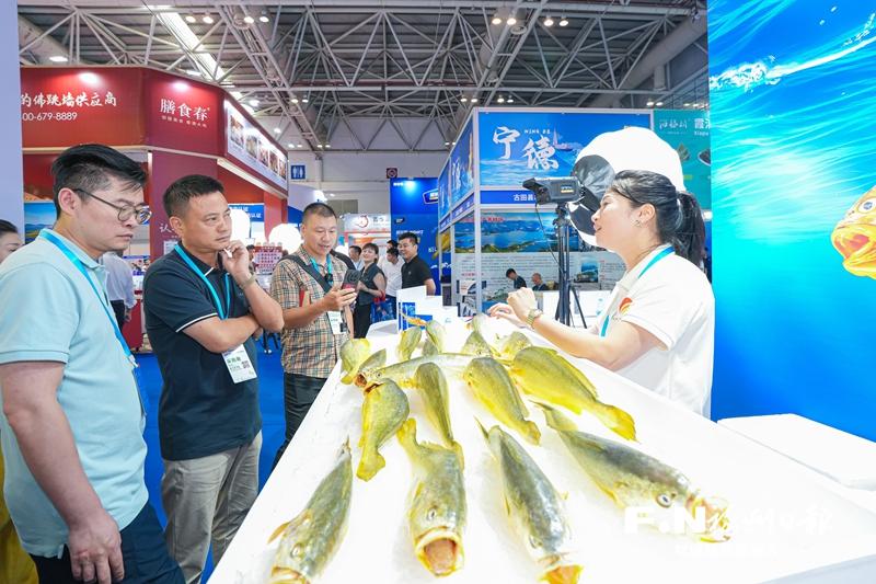 今年6月,在福州举办的渔博会上,宁德16家水产企业展出大黄鱼、海参等特色产品,展位前围满询价的客商;3个月后的第四届福州茶叶交易会上,福鼎白茶的清香萦绕展馆……