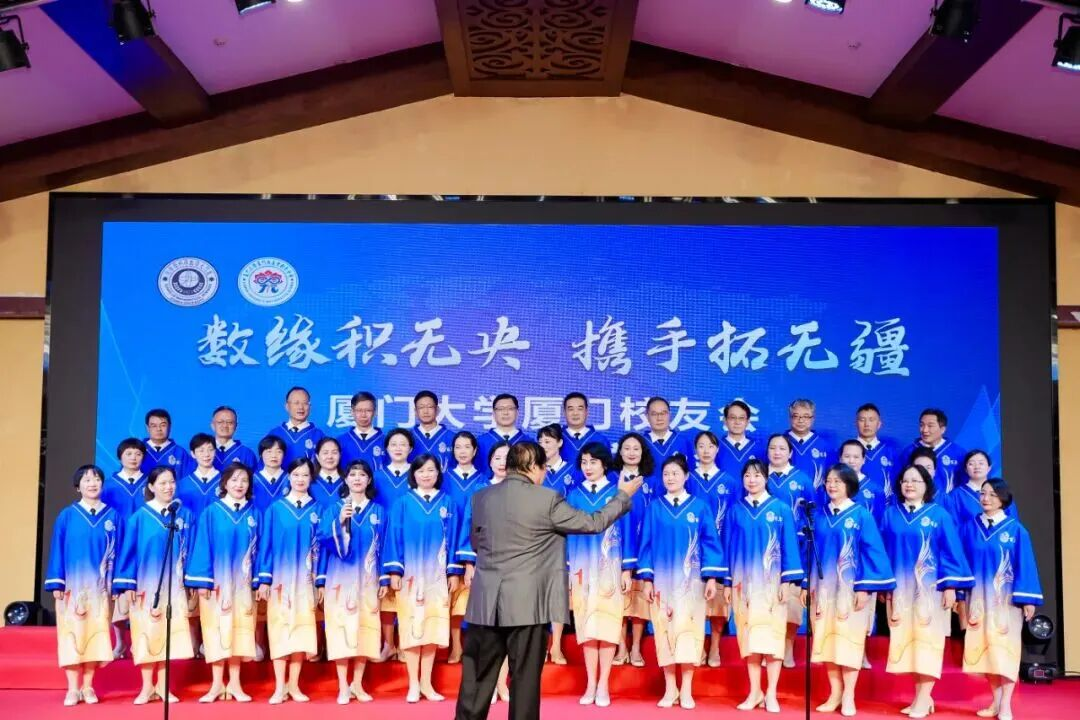 当厦大厦门校友合唱团在会上轻轻唱起《凤凰花季》时,现场瞬间进入了回忆模式。“那一年风儿吹过七月的海面”“我听到五老峰的呼唤”“挥别了芙蓉湖已泪流满面”“潮落潮涨几度风霜,青春不老岁岁年年”……当这些带着厦大特有印记的歌词和旋律缓缓吟唱时,现场许多校友激动得热泪盈眶。