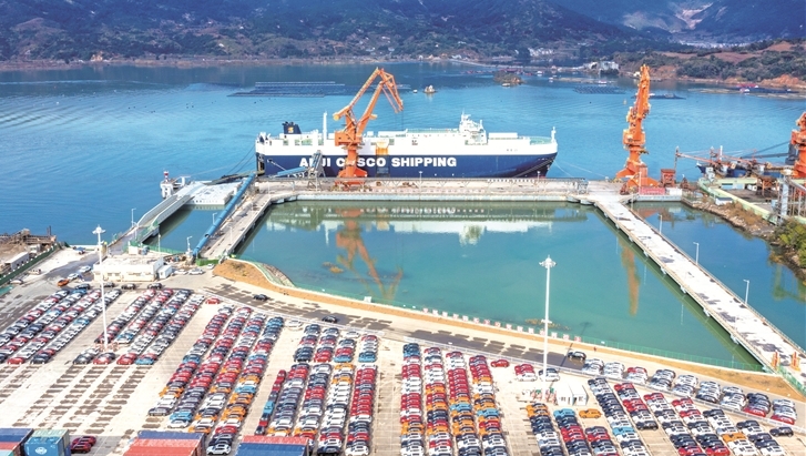 2024年,宁德四大主导产业通过港口运输货物2930万吨、集装箱4.85万重箱,占总吞吐量35.2%;2025年1至9月,新能源重卡出口149辆,货值1.04亿元,成为外贸增长新亮点。
