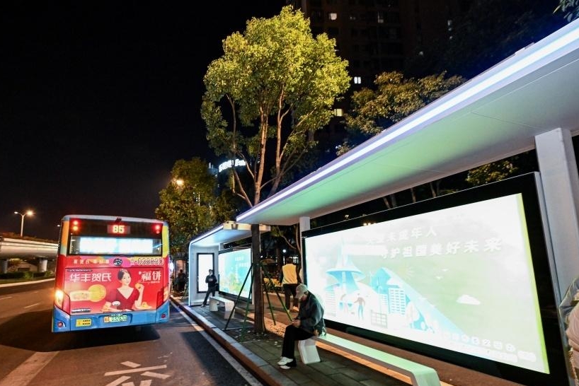 横江渡公交站完成光伏及个性化改造。记者 石美祥 摄