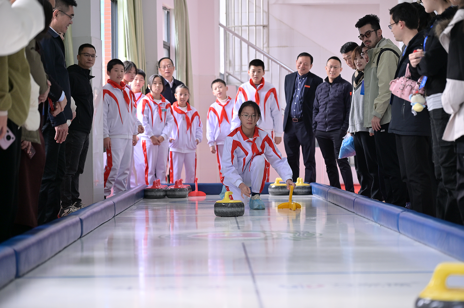 启动仪式后,“冰雪情缘・壶见梅台” 冰壶体验活动在城关小学冰壶馆开展。台湾青年与闽清职专、城关小学的冰壶队员混合组队,通过精准的投掷、默契的刷冰配合,在攻防协作中增进了解、加深情谊。(通讯员 庄钧)