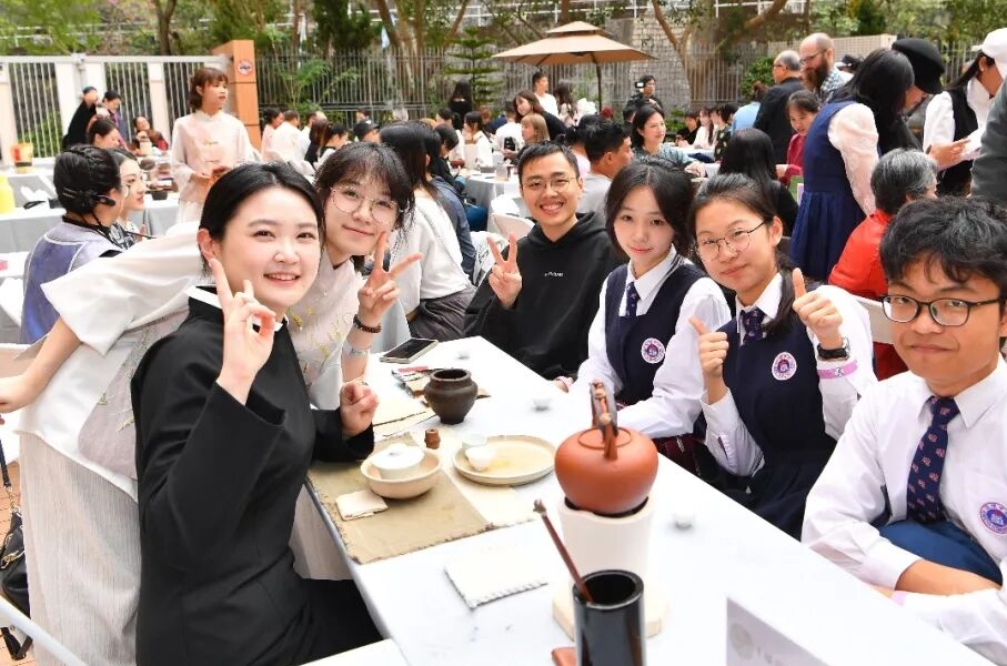 洪卉(右一)参加“茶·工夫 融合 百八席在”系列活动现场照。