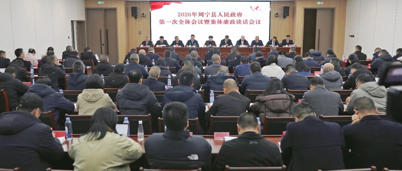 12月25日,县委副书记、县长陈文卿主持召开2026年周宁县人民政府第一次全体会议暨集体廉政谈话会议,动员全县政府系统以“开局即决战、起步即冲刺”的奋进姿态,迅速把县“两会”描绘的“规划图”转化为“施工图”,将代表委员的“建议清单”变为政府的“履职清单”。县政府副处级以上领导、各乡镇、县直有关部门主要负责同志参加。