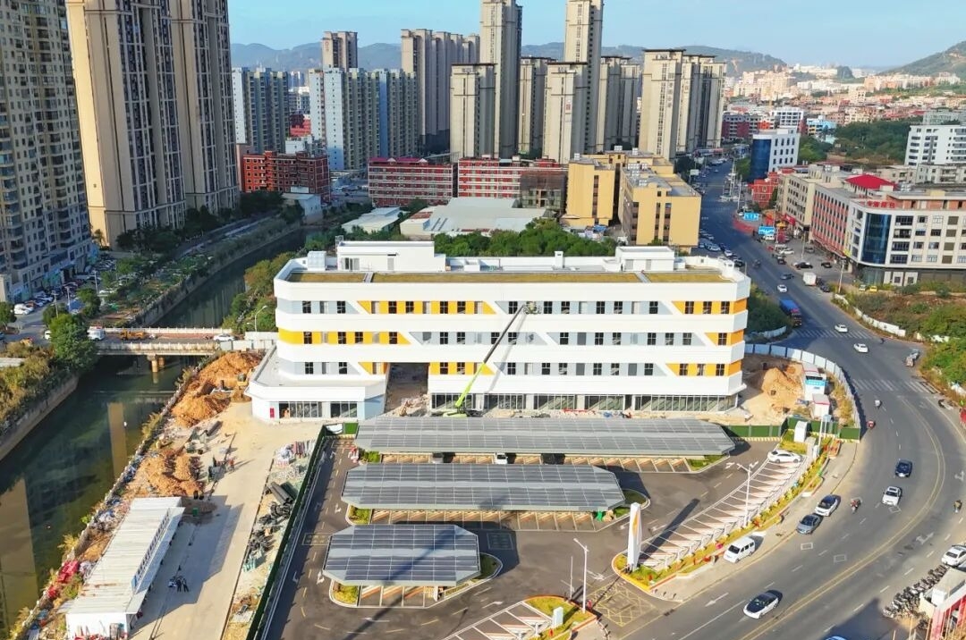 走进施工现场,只见建筑外立面完整亮相,橙白相间的主色调简约大气,柔和流畅的线条勾勒着建筑轮廓。“目前主体建筑已经完成室内外装修,正在进行收尾工作,预计2026年春节前全面竣工并正式投入运营。”项目相关负责人介绍。
