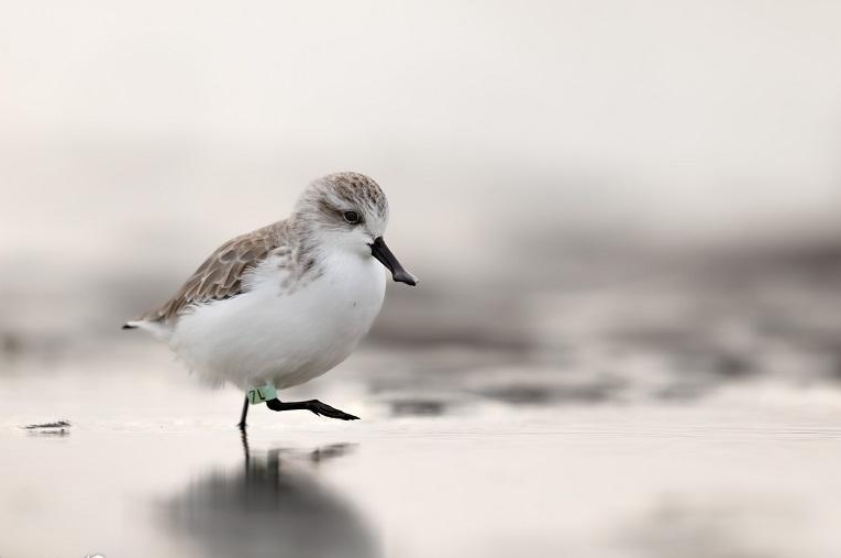 这种“认识”建立在不间断的专注上。黄宝桐可以为了观察潮汐与鸟类的活动规律,从清晨七八点待到日落。他逐渐不需要潮汐表:“天天拍,自然知道退潮的时间。”他能从上百只混群的红颈滨鹬中,一眼认出体型相仿却喙形独特的勺嘴鹬;能通过羽毛的深浅,分辨出7L、C8和H0——围头湾这三只带有绿色旗标的勺嘴鹬常客。