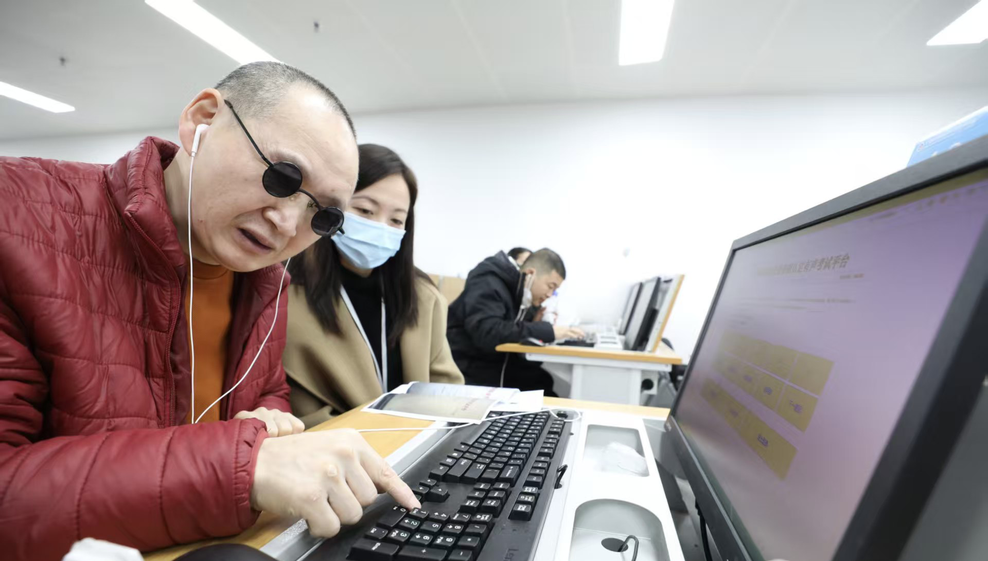据悉,当天考试共有10名符合条件的盲人考生参与。考试启用的无障碍系统,具备语音读题、便捷答题两大核心特色——系统可智能识别导入的工种母卷,考生登录后即可收听语音题目,借助快捷键便能完成答题操作。同时,现场配备专属老师一对一跟进,及时为考生解决答题过程中遇到的各类疑难问题,全方位消除盲人考生的应试障碍。