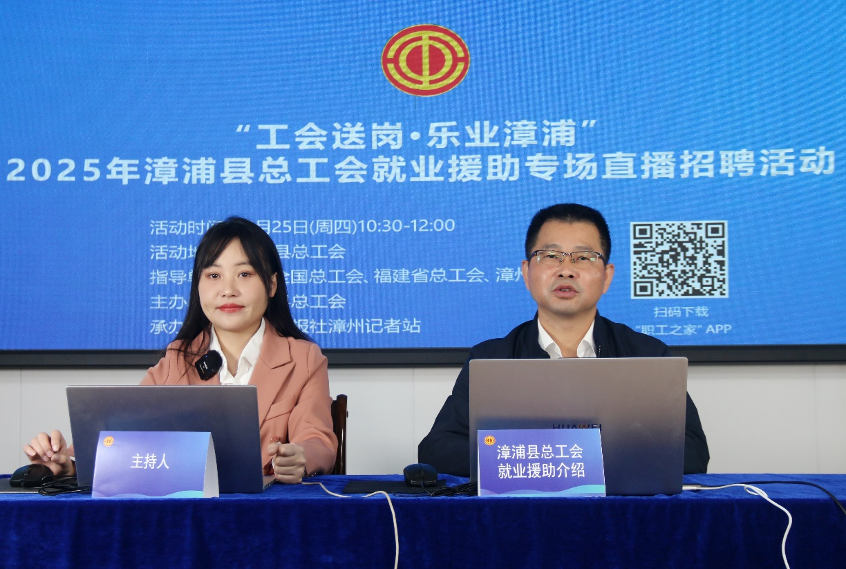 12月25日上午,“工会送岗·乐业漳浦”2025年漳浦县总工会就业援助专场直播招聘活动在漳浦县总工会顺利开播。