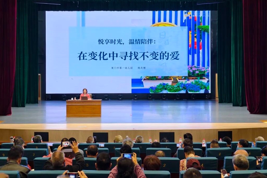 12月18日上午,由厦门市委老干部局、厦门老干部大学、厦门老年大学、厦门市老干部党校共同举办的隔代教育讲座在厦门老年大学举行。市委离退休干部工委专职副书记黄光华主持讲座。厦门市第一幼儿园园长、特级教师姚莉娜作《悦享时光,温情陪伴:在变化中寻找不变的爱》专题分享。全市近400名离退休干部、离退休干部党支部书记及老年大学学员代表等参加。