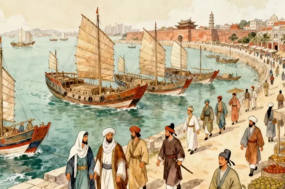 宋元时期,泉州港被誉为“东方第一大港”。(AI制图)