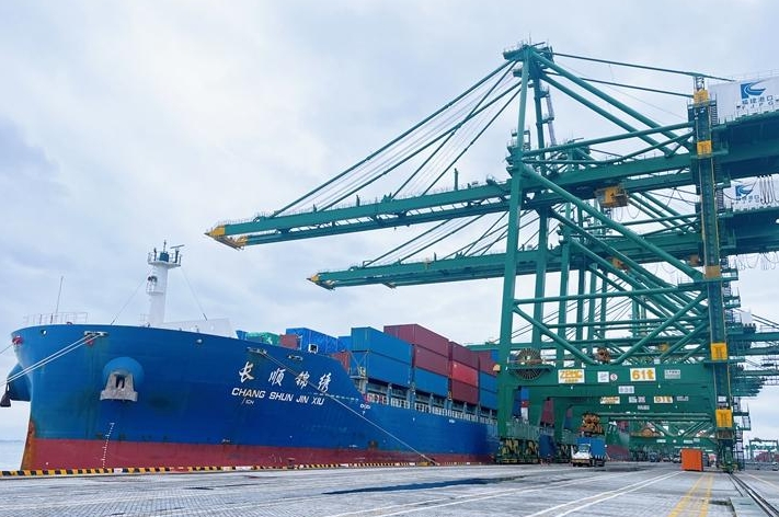 25日,集装箱船“长顺锦绣”轮在福州港江阴港区完成靠泊作业,标志着江阴港区开通一条面向非洲的高效物流通道。