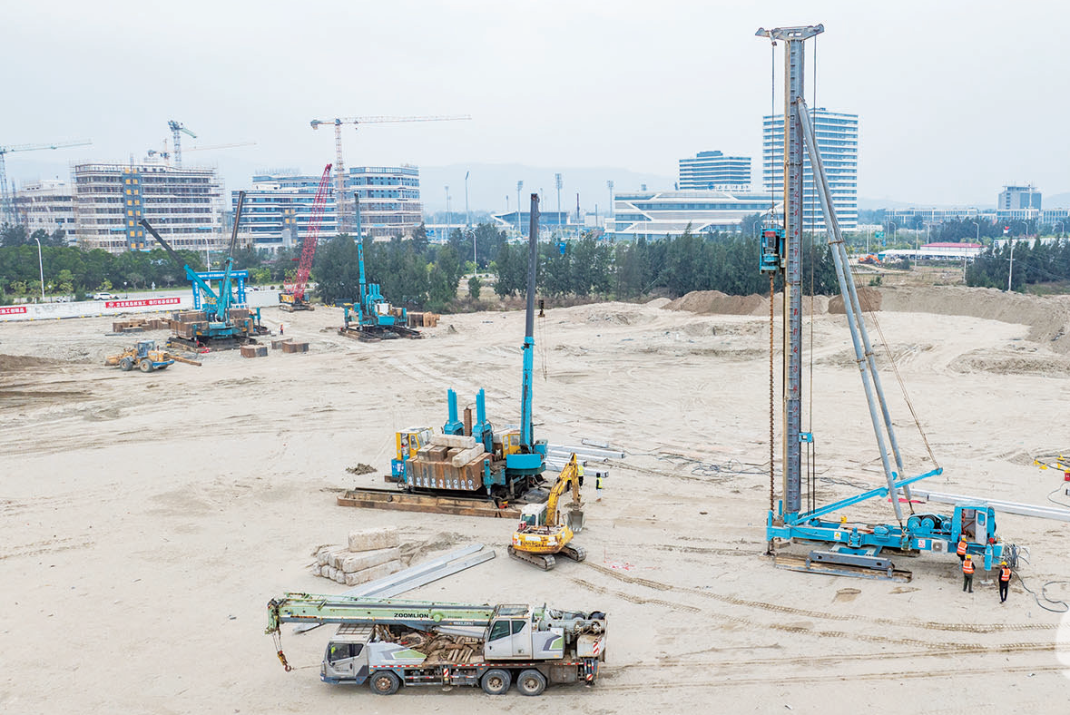 面对施工难题,项目建设团队在工程桩正式施工前,开展了深入的试打桩工作,对桩长、压桩力、焊接质量、垂直度等各项参数进行反复验证与比对。此外还邀请省内乃至国内岩土工程领域的专家多次现场勘探研判,最终论证形成详尽的施工方案