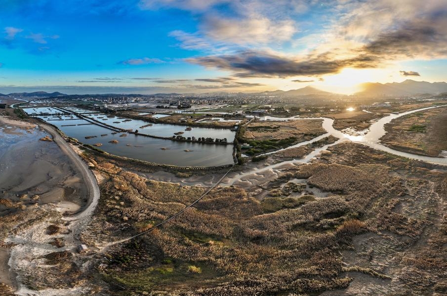 这是12月27日拍摄的闽江河口湿地国家级自然保护区核心区鳝鱼滩全景(无人机照片)。
