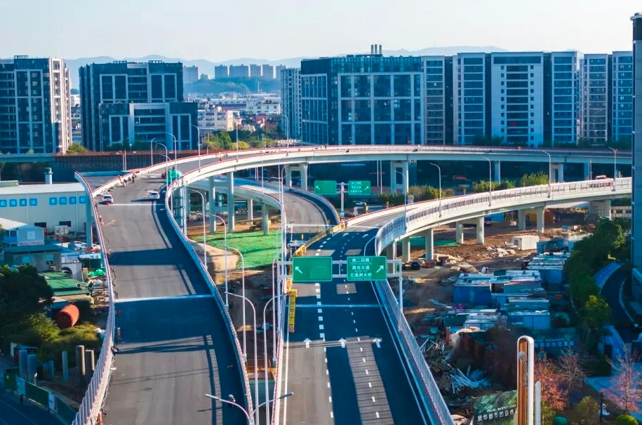 今年10月、11月,A、B两条匝道先后实现合龙,标志着二环路快速通道实现了全线闭合。