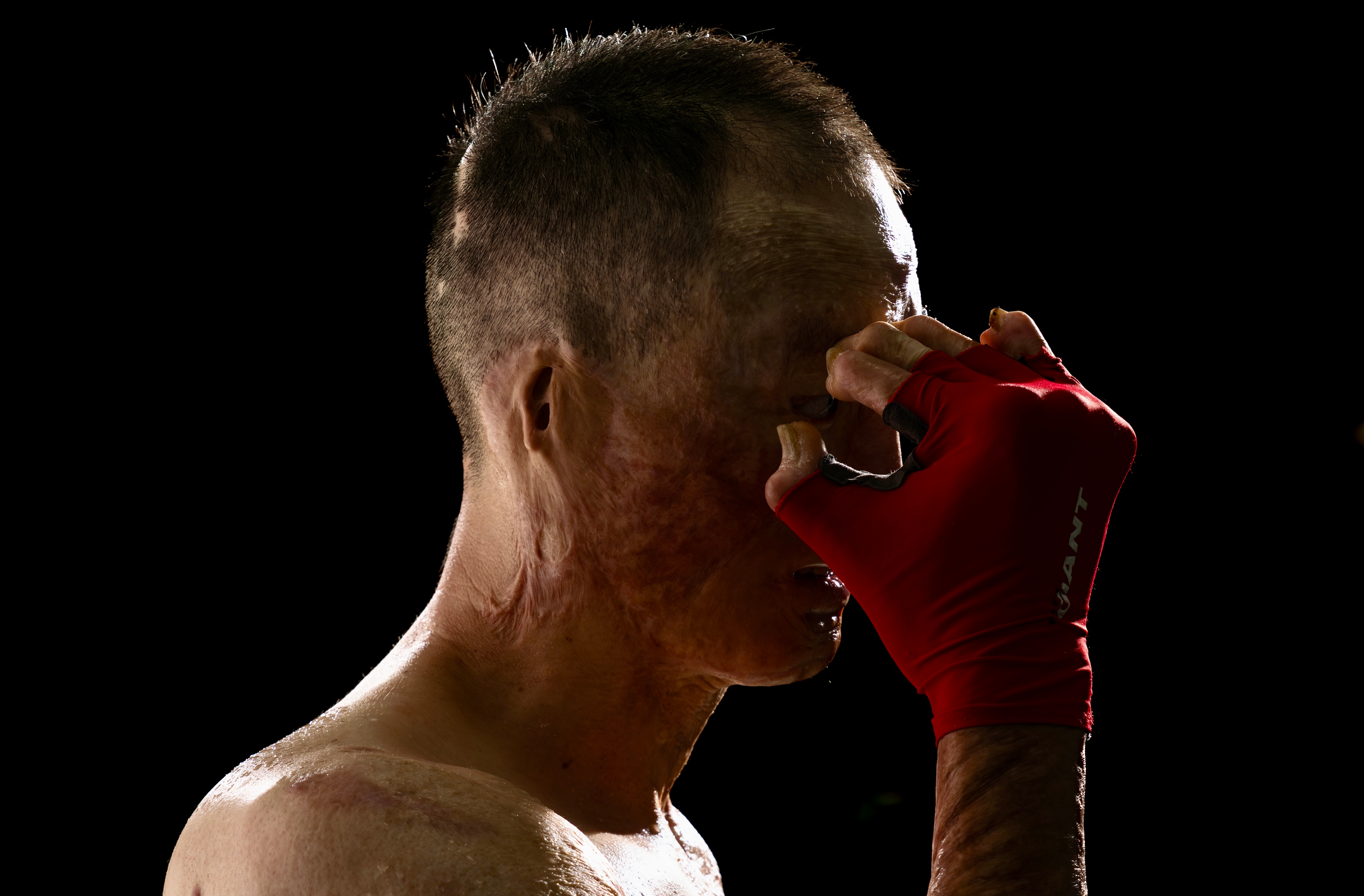 ▲2025年6月28日,谢晓晖在永安消防救援大队的健身房锻炼。这位救火英雄最初被医学断定只能卧床,他硬是靠着超强的意志重新站起,创造了生命的奇迹,也让满身疤痕成为他的铠甲。