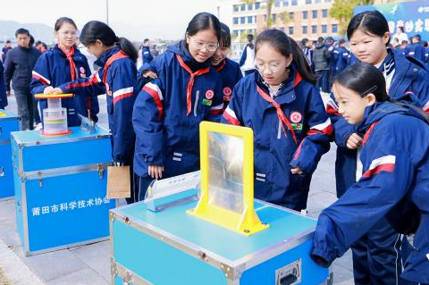 黄建顺副厅长在讲话中充分肯定全省科学教育成效。他指出,过去一年,福建落实“双减”中科学教育“加法”要求,各地打造出“科学+非遗”“海洋+科学”等特色模式,相关案例获教育部推广及主流媒体报道。他特别提到,莆田作为千年文脉之地,孕育了林兰英等院士专家,彰显科学教育与人文底蕴的深度交融。“收官不是终点,未来将持续巩固成果,推进科学教育常态化、制度化,勉励青少年永葆好奇心、勇攀科学高峰,呼吁社会各界携手擦亮福建科学教育品牌。”
