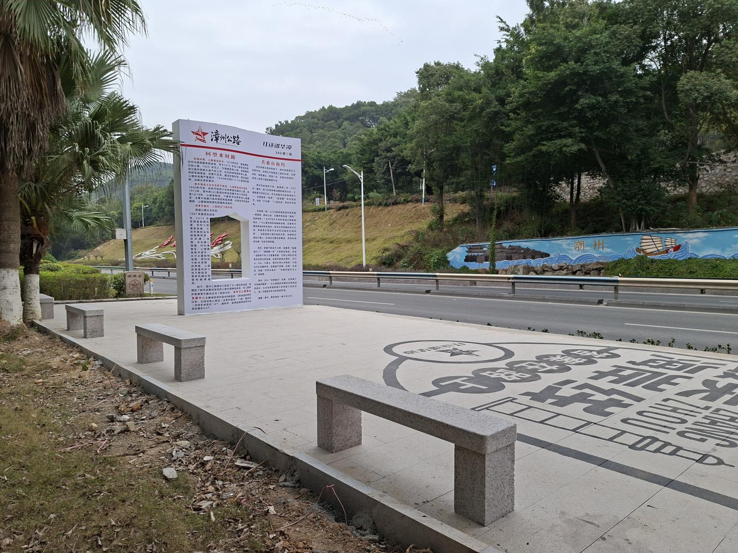 步入打卡点,浓郁的人文气息便扑面而来,打卡点正面以苍劲大气的镂空“福”字为视觉中心,将不远处的“福建”界碑嵌入“福”字中,不仅生动诠释着福建深厚的“福”文化底蕴,更传递出 “入闽即见福”的美好寓意。而点缀其间的水仙花、土楼等漳州元素,则与地面上“红途谱华漳”的彩绘交相辉映,构筑起党建品牌与地区特色深度融合的文化矩阵。打卡点背面植入公路文创设计,分为“回望来时路”与“共赴山海约”两部分,将半个多世纪的公路发展历程与乡土人文情怀细腻融合,让南来北往的司乘人员在领略闽粤交界浓郁风情魅力的同时,也能感受到诏安公路昂扬奋进的党建活力。