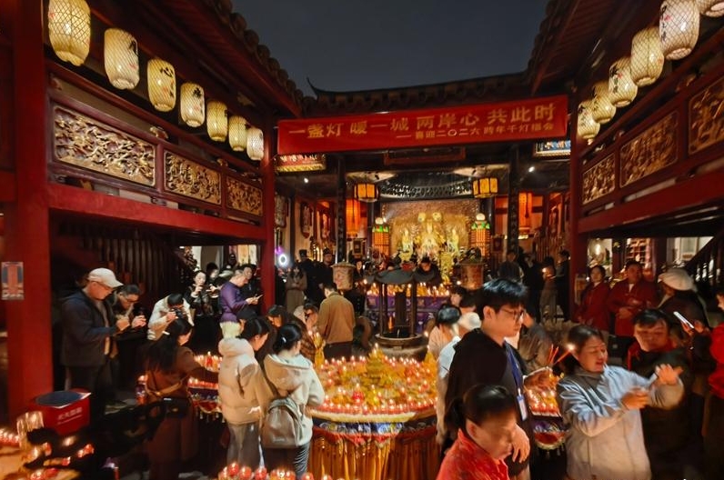 2025年12月31日晚,三坊七巷郎官巷天后宫举行一年一度的跨年千灯会。在榕台胞与福州市民齐聚一堂,共同许下对2026年的美好心愿,迎接新年的到来。