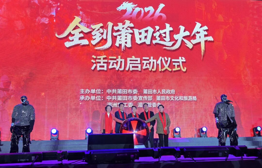 福建日报·新福建客户端 1月1日 讯(记者 陈盛钟)2025年12月31日晚,“全到莆田过大年”启动仪式在莆田湄洲岛湄洲妈祖祖庙天后广场举行。莆田市委书记付朝阳,莆田市委副书记、市长戴龙成,莆田市人大常委会主任苏永革,莆田市政协主席沈萌芽,莆田市委常委、宣传部部长陈惠黔共同触摸启动球,正式启动“2026全到莆田过大年”活动。