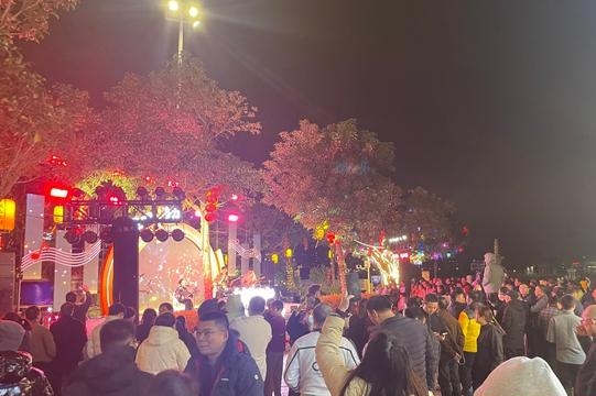 当晚23:55时分,现场活动进入跨年倒计时环节,现场游客朋友,纷纷拿起手机,打开手电筒,大声倒数。“十!九!八!七!六!五!四!三!二!一!新年快乐!”零点钟鼓声响起、全场欢呼,夜间灯光秀与数字效果交相辉映,光影秀达到最高潮。游客朋友们争相拍照留念,与千年洛阳桥共启新年。