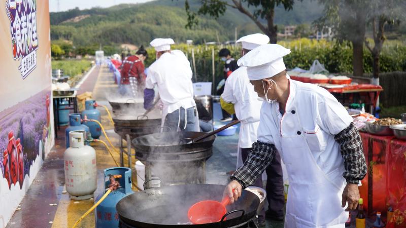 “第一次在田园里体验长桌宴席,也是第一次吃到特色的“四大桶”,价格实惠,味道也很不错。大家围坐在一起吃,更香了。”元旦期间,游客林红带家人从厦门自驾过来旅游,正赶上坂里乡的新年系列活动,和当地的乡亲朋友围坐一桌,听着村民们用乡音交流,互相招呼,吃着原汁原味的本土美食,对于她来说,一张19.9元的餐券,兑换来了关于乡土与温情的沉浸式体验。