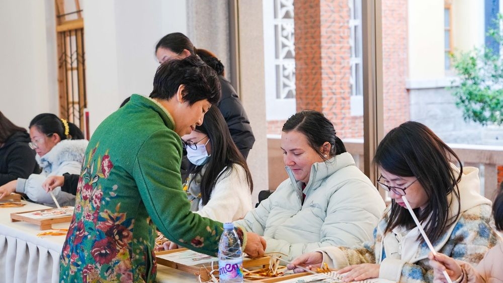 现场,参与者们凝神专注,指尖持纸条轻穿细引,经纬交错间,平面画逐渐呈现出独特的立体朦胧感。“太神奇了!绘画作品经过编织后,像蒙了一层薄纱,意境一下子就出来了。”游客张女士告诉记者,此前她仅在博物馆中见过纸织画作品,今日能在大师指导下亲手体验制作过程,真切感受到传统工艺的匠心,觉得格外有意义。