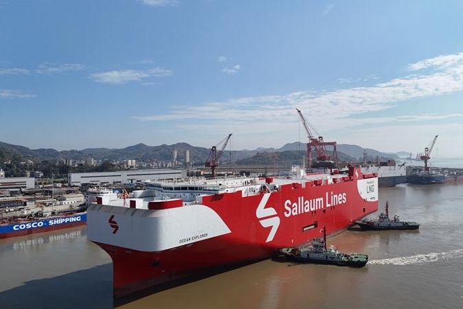 6日,在福州市连江县粗芦岛,福建船政重工股份有限公司旗下福建省马尾造船股份有限公司为瑞士企业建造的7500车LNG(液化天然气)双燃料汽车滚装船(XSI463J)正式交付。