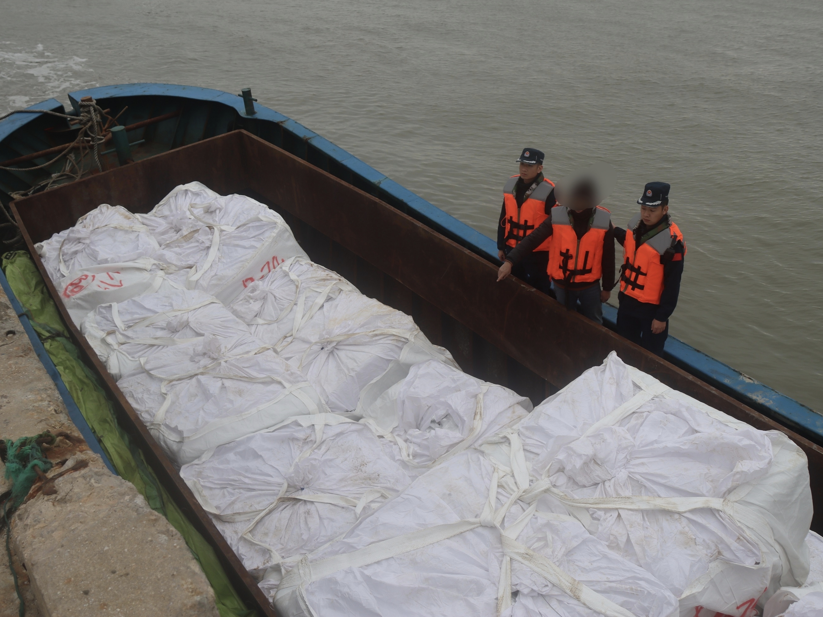 1月5日晚,莆田海警局湄洲工作站依托“五联防”工作机制,在平海湾附近海域发现疑似有船舶从事走私活动。经分析研判,该站立即派遣执法员前往现场查缉,到达目标海域后,发现一艘形迹可疑的无船名、船号船舶,且该船未打开AIS系统。执法员迅速登临检查,当场抓获5名嫌疑人。该船共载有牛肚、牛百叶等冻品20余吨,随船人员无法提供货物来源合法手续和相关证明,涉嫌走私国家禁止进出口货物。目前该案正在进一步侦办中。