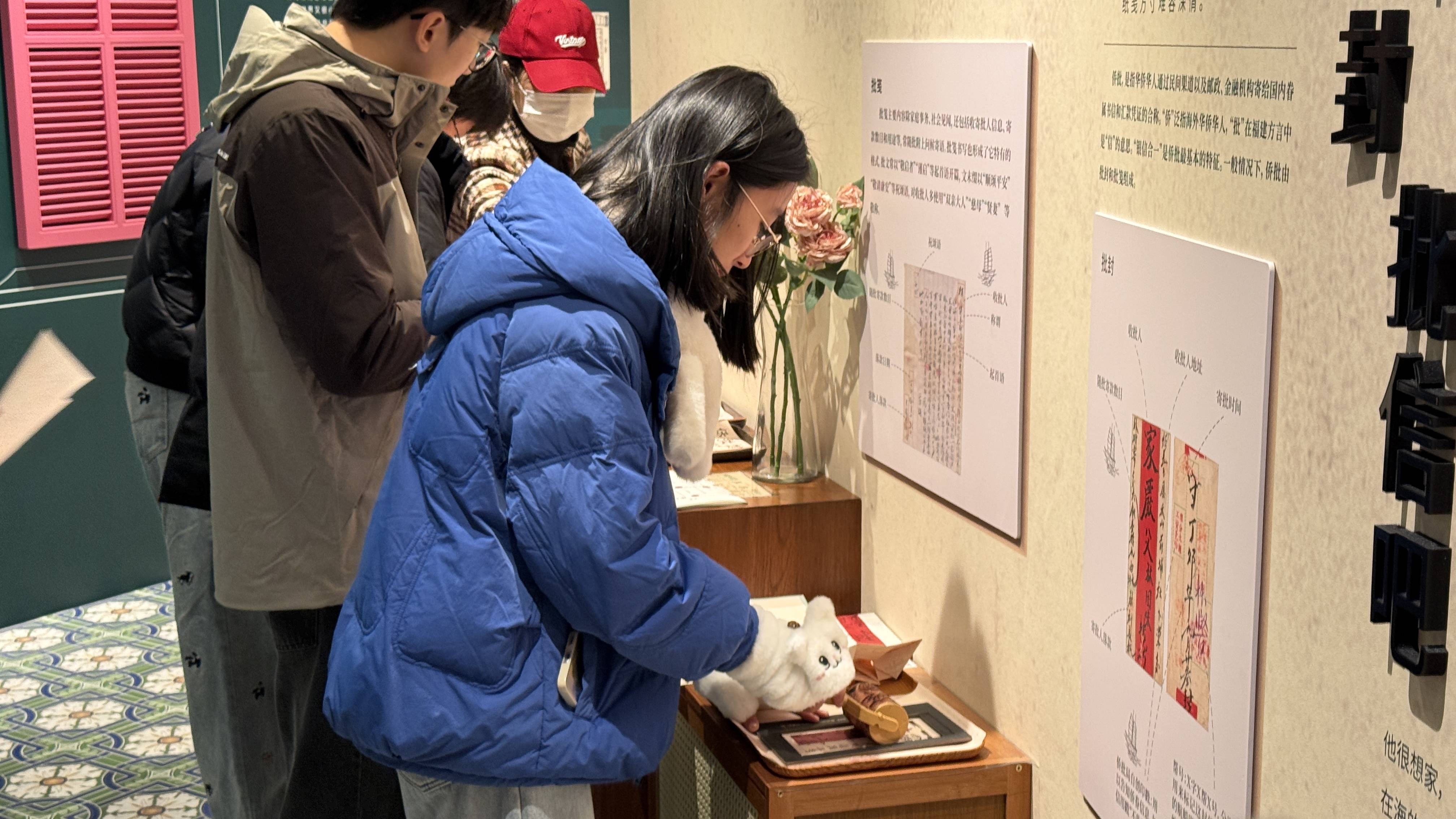 为了增强代入感,空间还设置了多项互动内容:观众可以打开“念念不忘”展墙上的信箱,阅读侨批中关于亲情、责任与思念的文字;可以参与轻解谜互动“侨批馆·驿里巷前传”,跟随“侨批馆”里的“闵掌柜”与“阿青”寻找线索,串联起一段跨越山海的故事;也可以亲手写下一封“侨批”,通过雕版印刷、盖章、滚刷等方式,体验从“写批”到“寄批”的全过程。