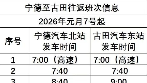 1月7日,记者从宁德汽车北站了解到,当天,宁德至古田往返高速直达客运班线开通试运营。