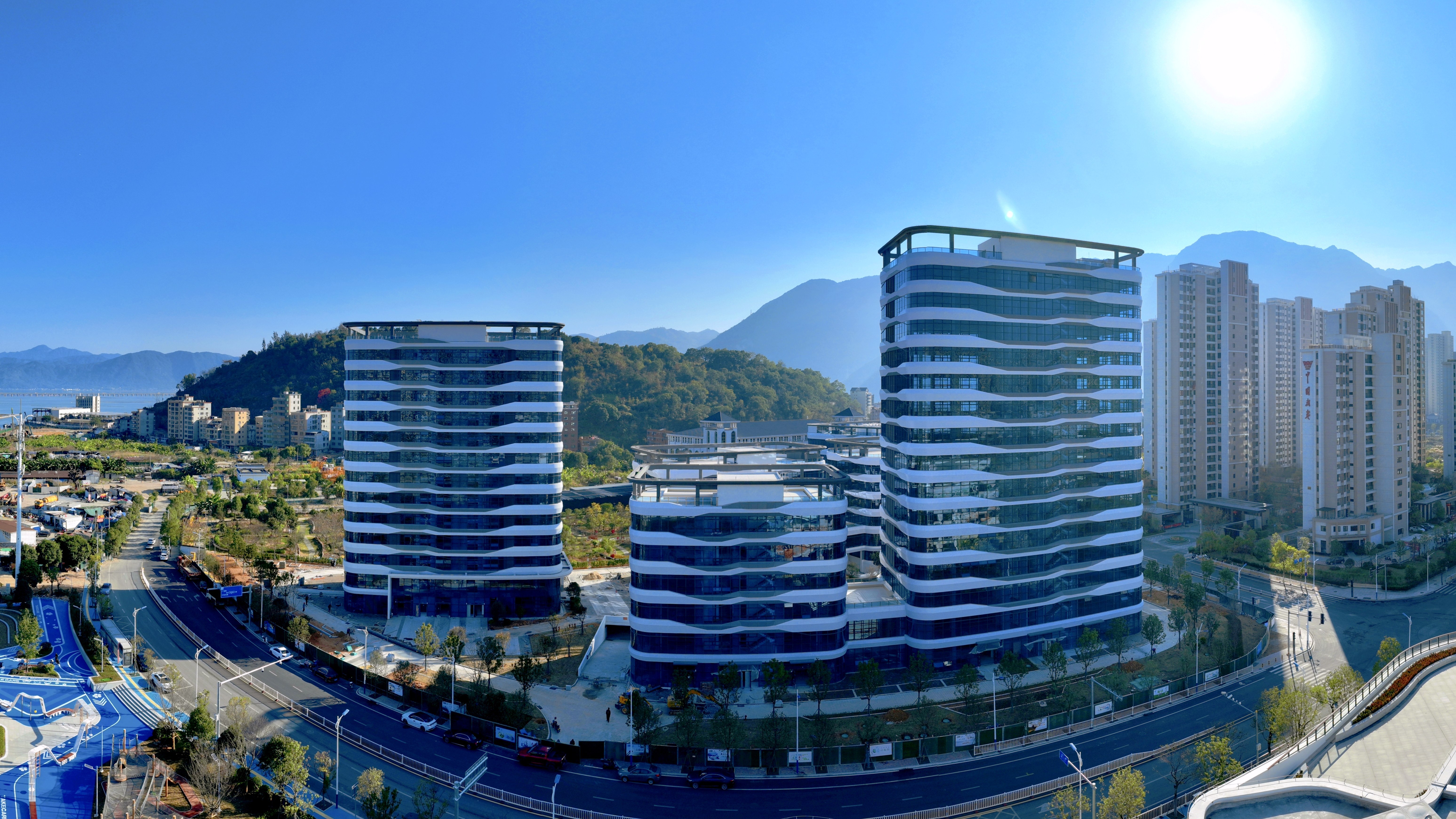1月7日,在航拍镜头下,位于东侨经济技术开发区塔南片区的安发科研创新总部暨安发本草生命健康创新研究苑项目主体建筑已全面落成。