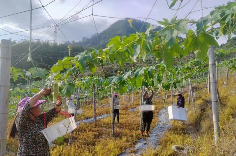 村民采摘丝瓜。受访者供图